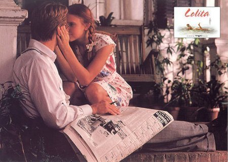| Một cảnh phim chuyển thể từ sách của đạo diễn Adrian Lyne, năm 1997: Diễn viên Dominique Swain trong vai Lolita, và Jeremy Irons – trong vai Humbert. |