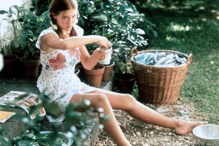 Mặc dù đã lớn thêm vài tuổi, em lại càng đậm vẻ tiểu nữ thần hơn bao giờ hết trong bộ đồ tennis và với đôi tay cặp giò màu trái mơ chín! Hỡi các quí ông có cánh! Không một kiếp sau nào là chấp nhận được nếu không sản sinh được ra em y nguyên như em lúc này, trong cái khu nghỉ mát này của bang Colorado, giữa Snow và Elphinstone, hoàn hảo mọi bề: chiếc quần soọc con trai màu trắng, thân trên thon mảnh, khoang bụng màu trái mơ chín, chiếc khăn che ngực màu trắng với những dải ruy băng hất ngược lên quấn lấy cổ, vắt ra sau và tận cùng bằng một nút đung đưa, để lộ đôi bả vai trần màu mơ chín, trẻ trung và yêu kiều đến làm ta nghẹn thở với cái phơi phới dậy thì ấy, những dáng xương đẹp như nét chạm và cái lưng mềm mượt, thon xuống phía dưới. Mũ em có cái chỏm trắng. Chiếc vợt của em tốn của tôi cả một gia sản nhỏ. Đồ ngu, ba lần ngu! Lẽ ra tôi đã có thể quay phim em! Nếu thế thì giờ đây tôi đã có em bên mình, trước mắt mình, trong cái phòng chiếu của nỗi đau và tuyệt vọng của tôi.